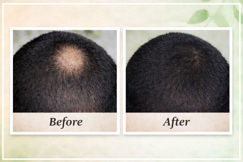 Its herbal-based formulation penetrates deep into the scalp, helping nourish inactive hair follicles and improve blood circulation in affected areas. This process supports the natural regrowth cycle of hair over time.